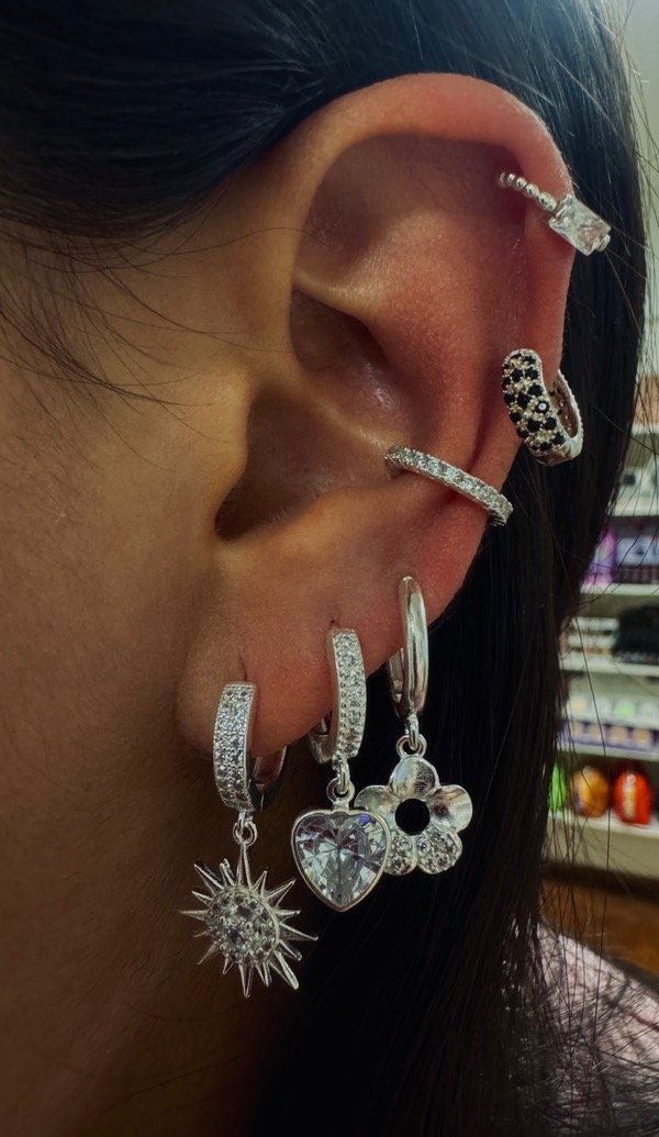 De ☀️ hermosísimo con destello, dobles argollas y muchos cubic para que se destaquen en tus orejas⚡️